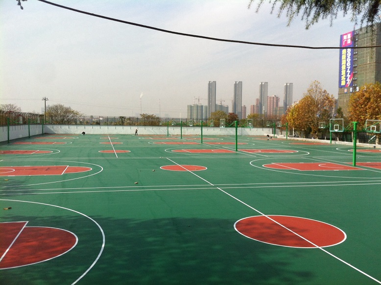 我公司承建的洪山小學硅pu籃球場,塑膠跑道
