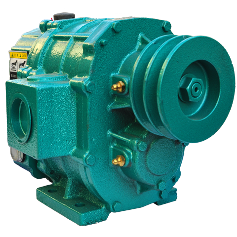 在2根平行的軸上設有2個葉輪,葉輪與橢 圓形機箱內孔面及各葉輪三者之間始終保持微小的間隙,由于葉輪互為反方向勻速旋轉,使箱體和葉輪所包圍著的一定量的氣體由吸入的一側輸送到排除的一側。